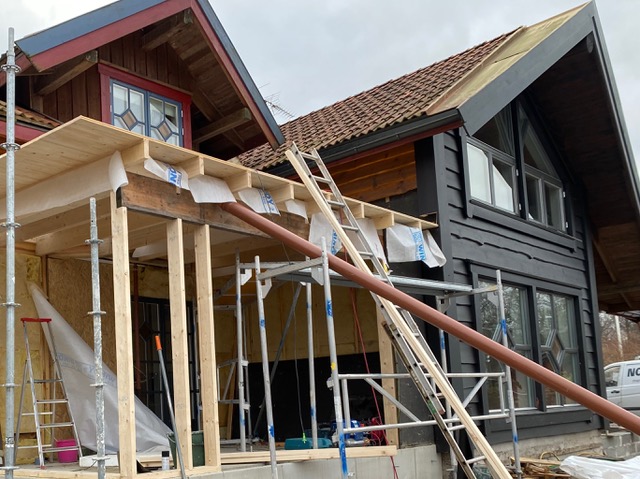 Attefallsutbyggnad 15 kvm och ombyggnad av överhängt tak.